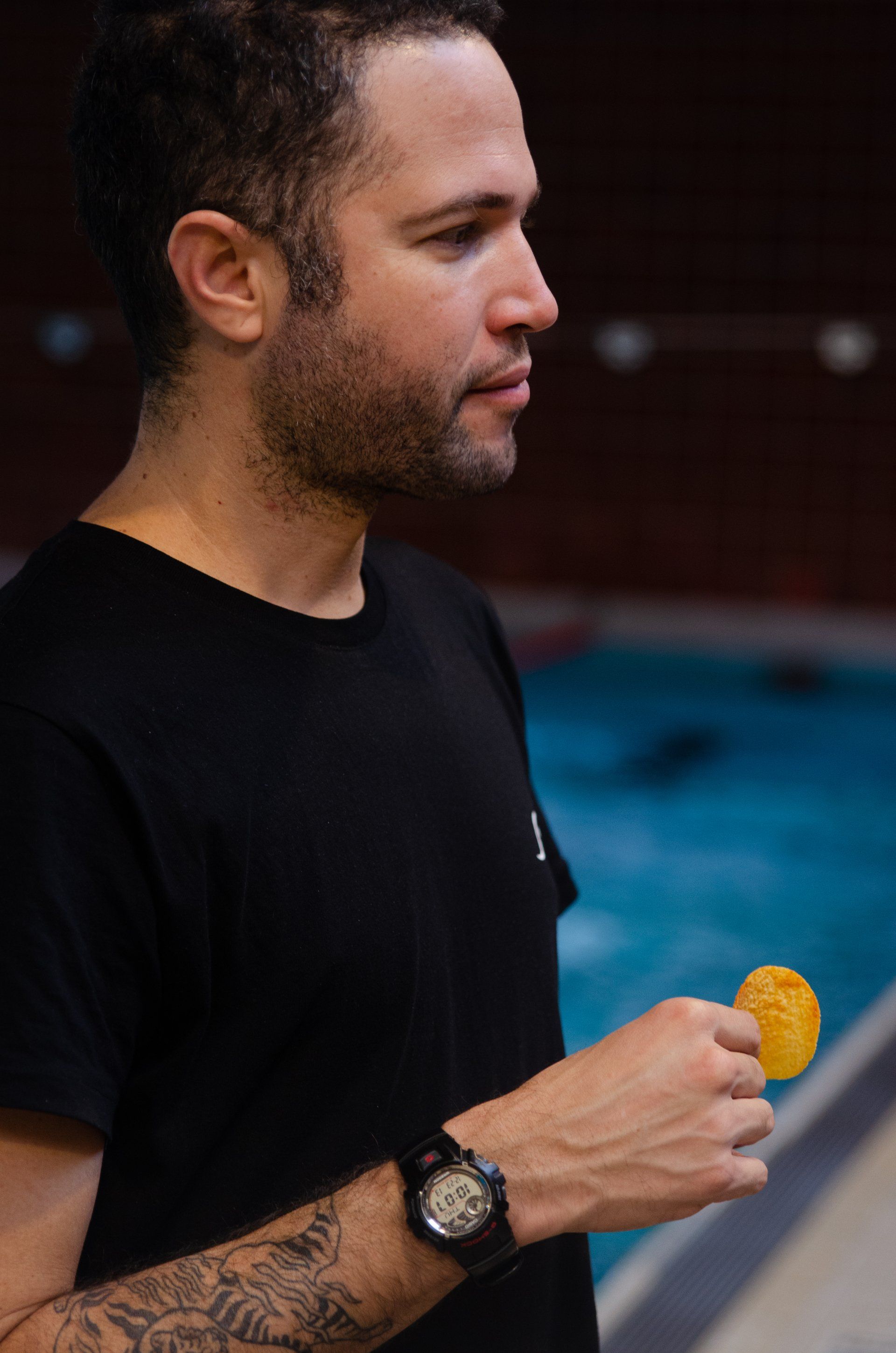Start 6.00 morgens. Etwa zehn Schwimmer machten mit uns den Anfang. Und Oliver Grossmann stand wie jeden Morgen längst fit am Beckenrand. Der Rest der Mannschaft traf nach und nach ein. Ebenso die beiden Trainer Marcos Lira und Darko Milanovic. Um 8.30 waren dann alle im Becken. Die Stimmung in der Halle war super! Unsere Trainer unterstützten uns vom Beckenrand aus. Und nicht nur das, Grossi und Darko stiegen selbst auch ins Becken. In den Pausen zwischen den Kilometern sorgten sie für reichlich Essen und Getränke. Vielen Dank an unseren Trainer Oliver Grossmann, der uns 100 Mc Donalds Burger spendiert hat. Die ersten 10 Km gingen schnell vorbei. Zwischen 10 und 11 Uhr hatten die meisten von uns sie hinter sich gebracht. Danach war die erste größere Pause angesagt. Und ein Foto bei Helenes Mutter, Annette Schultetus. Sie dokumentierte die Veränderung jedes einzelnen Sportlers während des ganzen Tages. Eine tolle Idee. Wir sind gespannt auf die Fotos. Ein großes Dankeschön an die Fotografin!